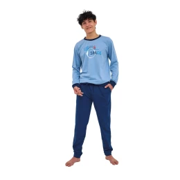 Chlapecké pyžamo 998/57 Light CORNETTE - z vysoce jakostní bavlny - tričko je světle modré barvy s dlouhými rukávy - zdobené barevným potiskem - dlouhé jednobarevné kalhoty mají pohodlnou gumu v pase - na bocích kapsy