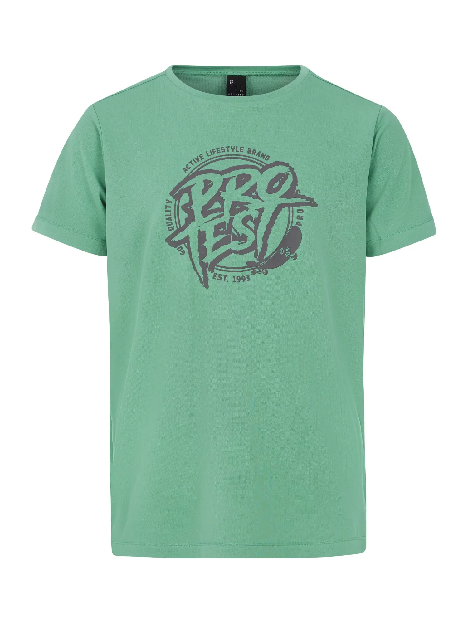 Má pravidelný střih a na přední straně má skvělý potisk Protest.