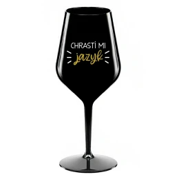 CHRASTÍ MI JAZYK - čierny nerozbitný pohár na víno 470 ml