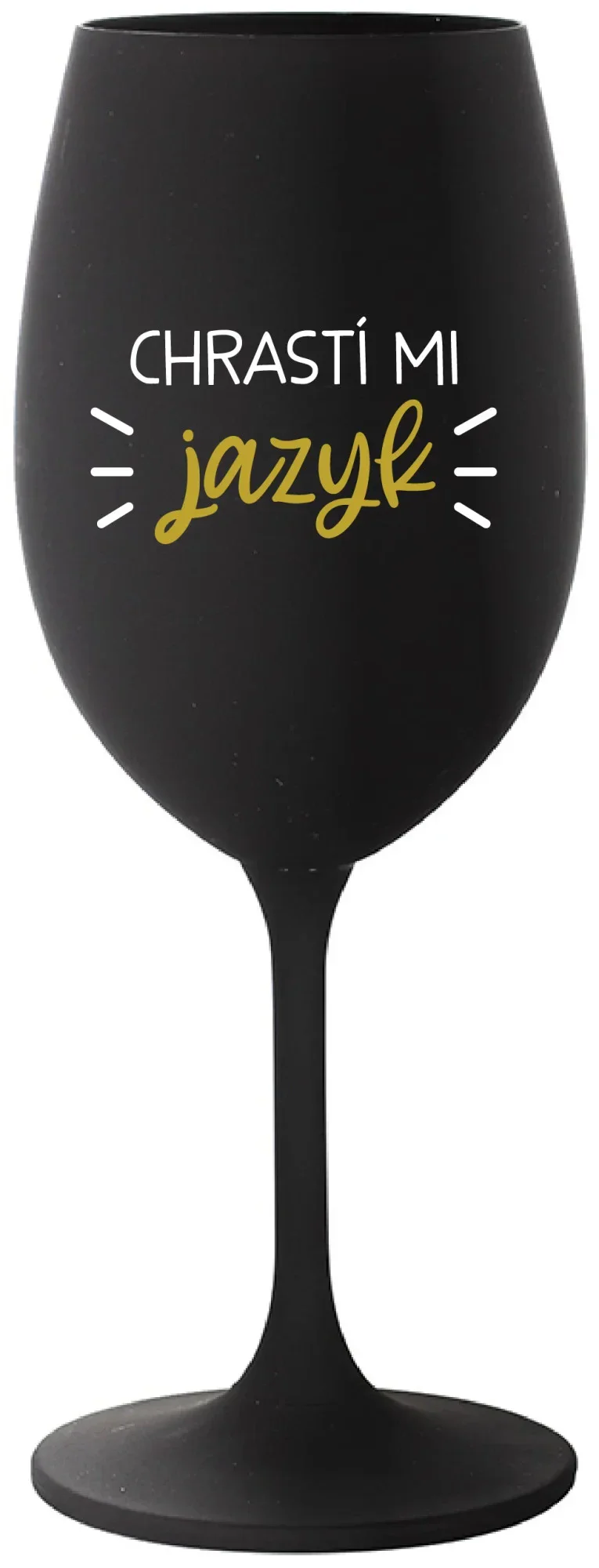 CHRASTÍ MI JAZYK - čierny pohár na víno 350 ml