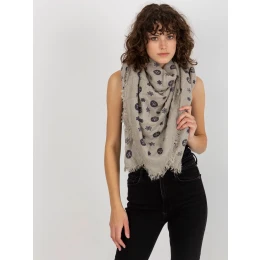 Šedý dámský šátek s potisky .