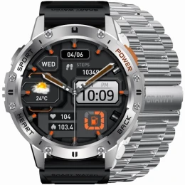 Odolné kovové pouzdro, minerální a tvrzené sklo, 1,43" dotykový displej s rozlišením 466*466 pixelů, funkce hovoru, ovládání hudebního přehrávače, několik sportovních režimů, výkonná baterie, svítilna.