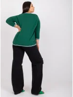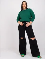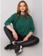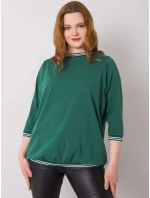 Tmavě zelená plus size halenka s žebrovanými manžetami.