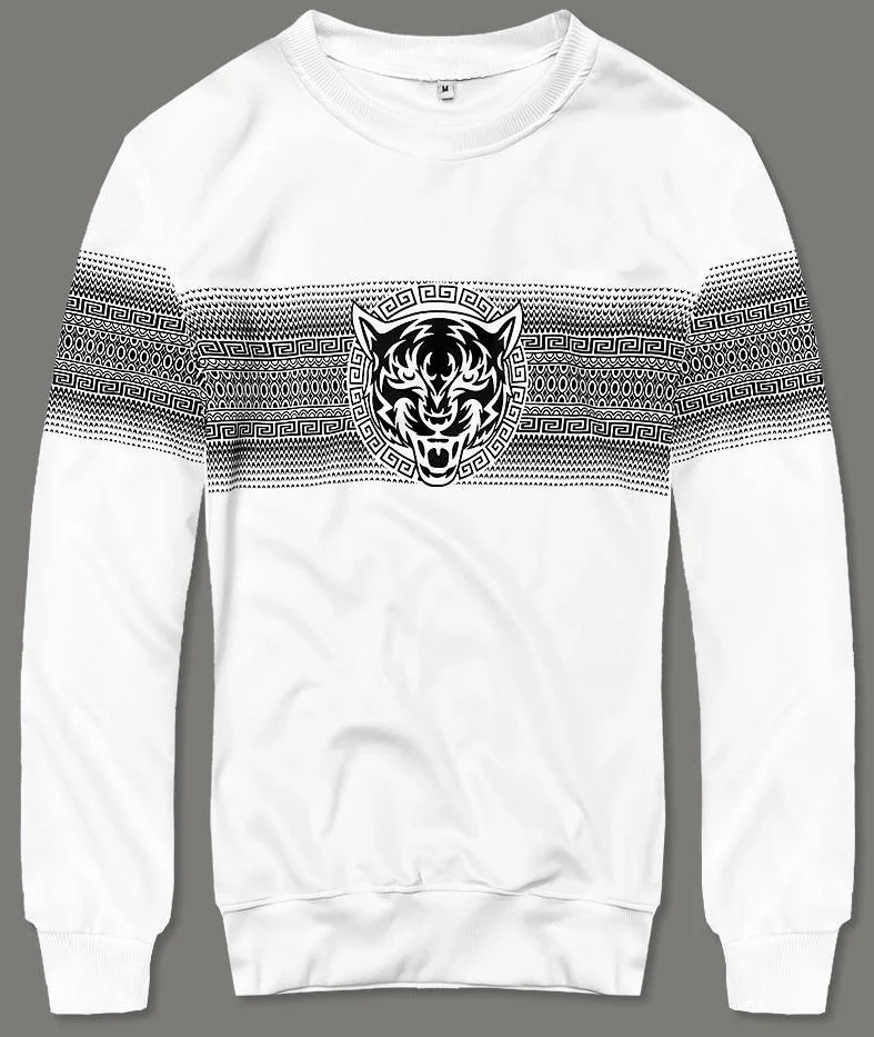 Mikina je ušitá z tenkého a lehce pružného materiálu, má volný střih a obléká se přes hlavu. Rukávy a spodní okraj modelu jsou olemované stahovacími lemy. Model má délku k bokům.