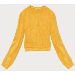 Tenká krátká žlutá dámská tepláková mikina (8B938-117)
