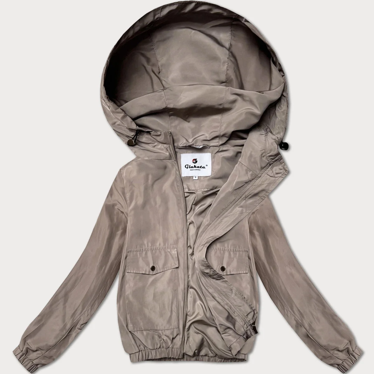 Tmavě béžová tenká krátká dámská bunda s podšívkou Glakate (LU98017#)