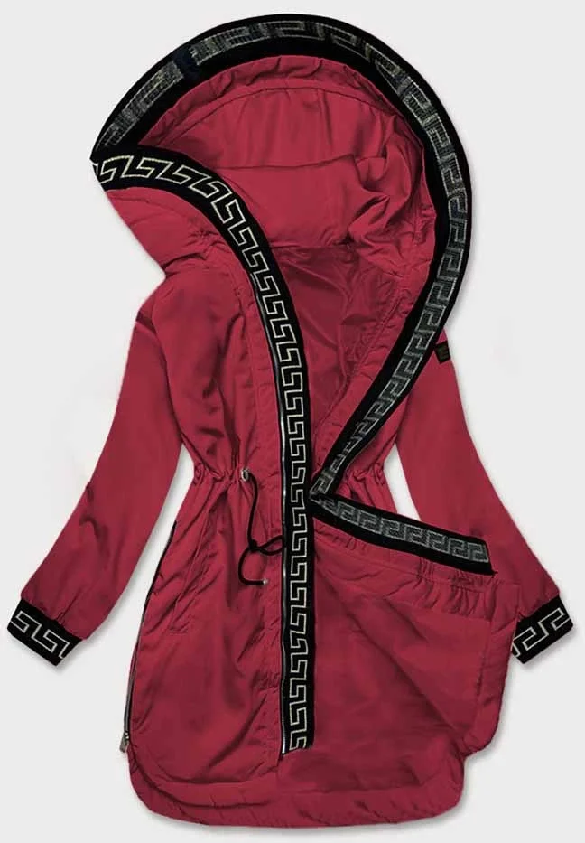 Tmavě červená tenká dámská bunda s ozdobnou lemovkou (B8142-27)