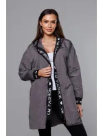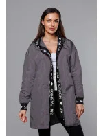 Tmavě šedá tenká dámská bunda s ozdobnou lemovkou (B8145-9)