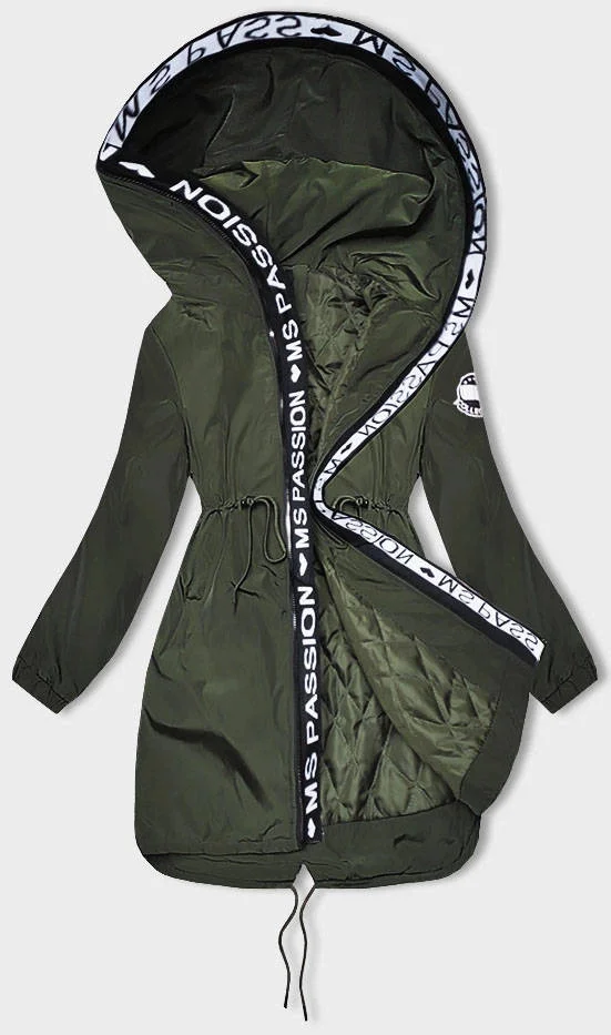 Tenká dámská bunda v khaki barvě s ozdobnou lemovkou (1811-1)