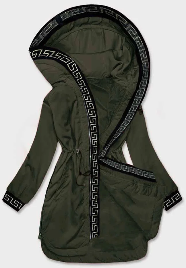 Tenká dámská bunda v khaki barvě s ozdobnou lemovkou (B8142-11)