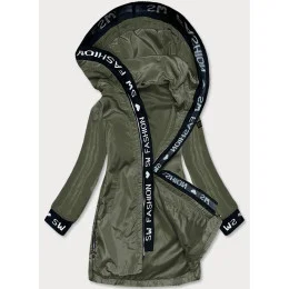 Tenká dámská bunda v khaki barvě s ozdobnou lemovkou (B8145-11)