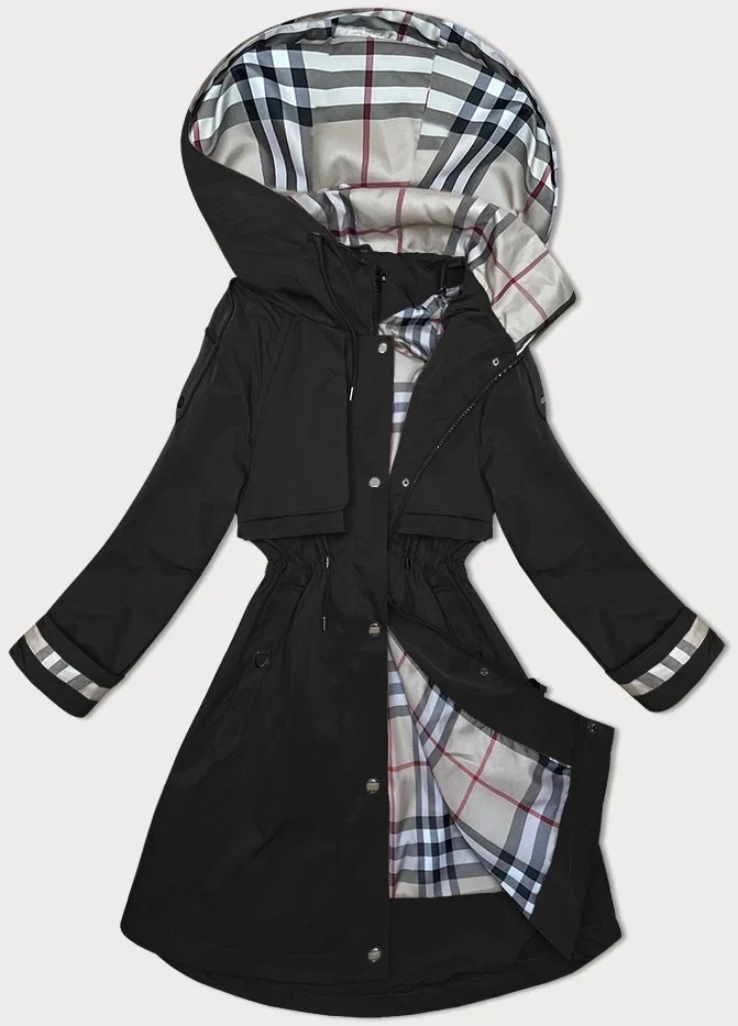 Tenká černá dámská bunda parka s kapucí BH Forever (BH-2403)