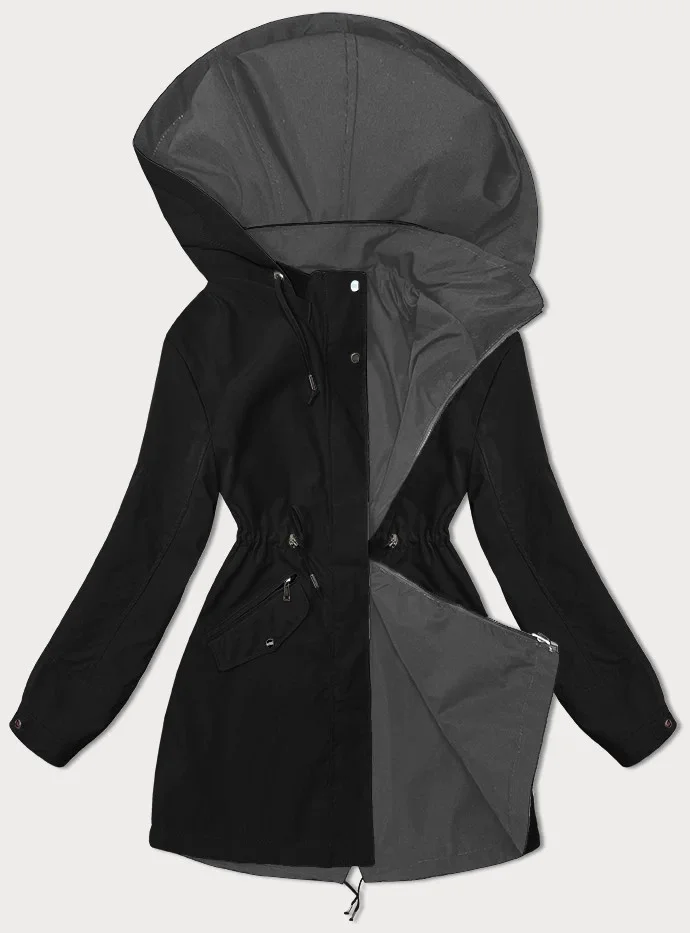 Černo-šedá tenká oboustranná dámská bunda parka (16M9081M-392C)
