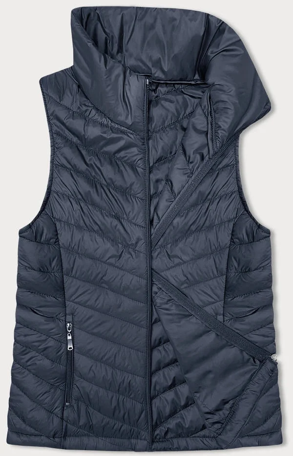 Tmavě modrá tenká dámská prošívaná vesta se stojáčkem (16M9063-215)