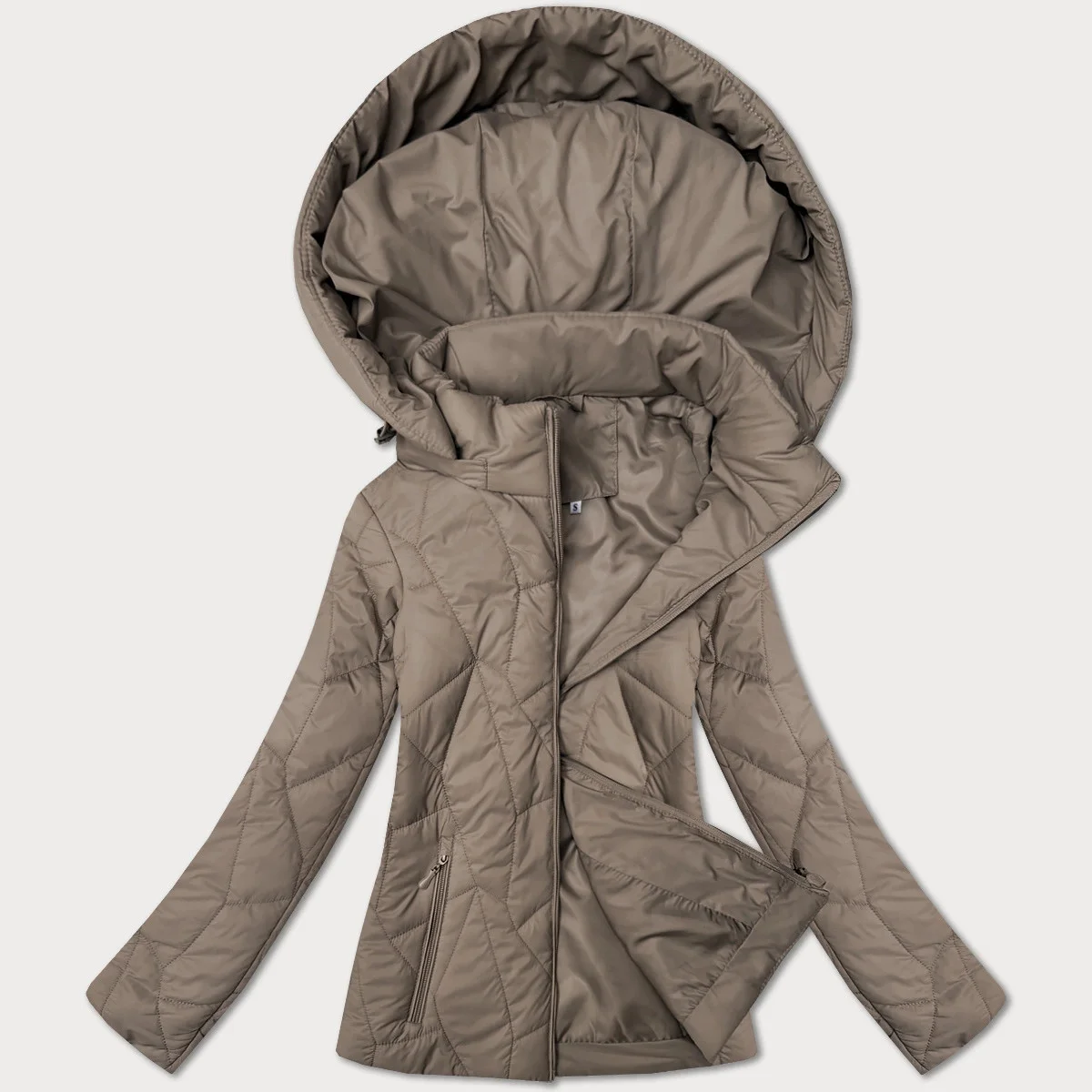 Tenká béžová dámská prošívaná bunda s kapucí J Style (16M9250-62)