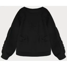 Mikina má kulatý výstřih, dlouhé rukávy a je olemovaná stahovacími lemy. Model má délku k bokům.