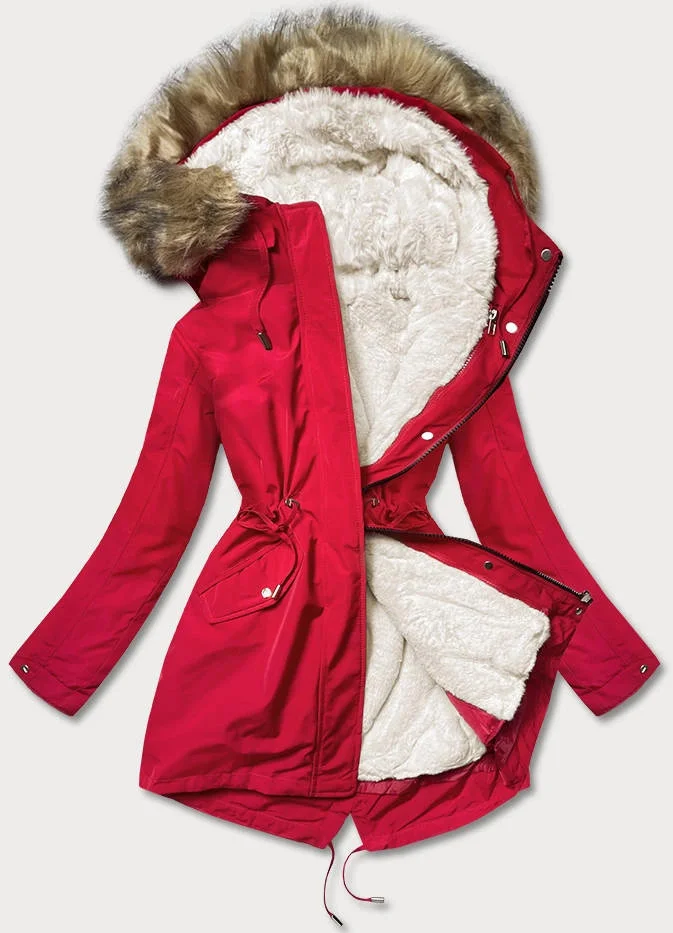 Červeno-ecru teplá dámská zimní bunda (w629)