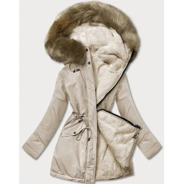 Béžová teplá oboustranná dámská zimní bunda (w610)