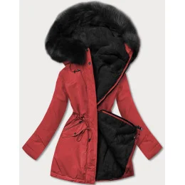 Červeno/černá teplá oboustranná dámská zimní bunda (w610)