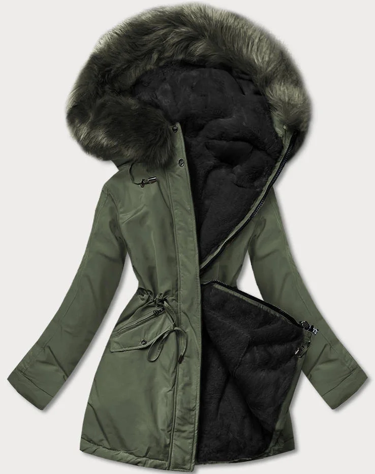 Khaki-černá teplá oboustranná dámská zimní bunda (w610)