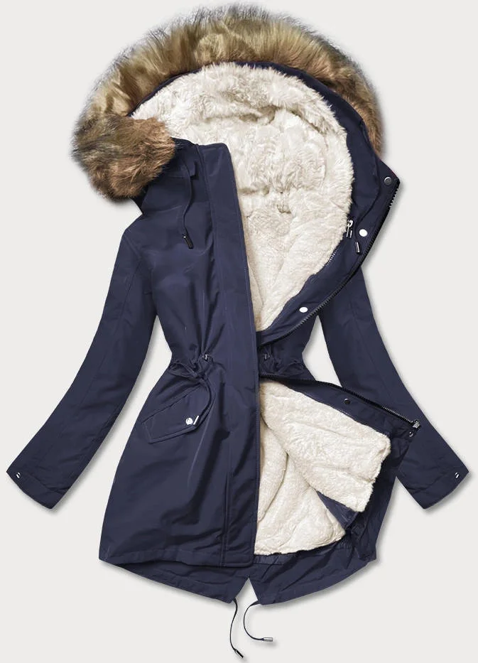 Tmavě modro-ecru teplá dámská zimní bunda (w629)