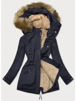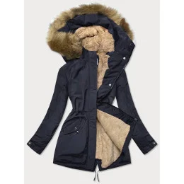Tmavě modro-béžová teplá dámská zimní bunda (w559)