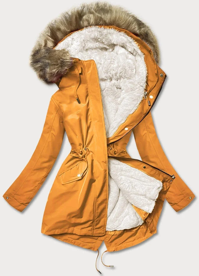 Žluto-ecru teplá dámská zimní bunda (w629)