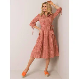 Cihlové pruhované šaty.