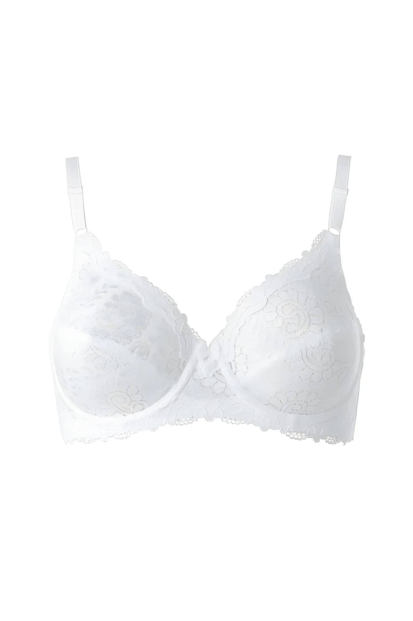 Dámská nevyztužená podprsenka Compliment W - Triumph. Formující podprsenka s kosticemi, dolní část podprsenky i košíčků dodatečně zpevněná. Košíčky vyrobené z krajky, napůl vyztužené další vrstvou tylu