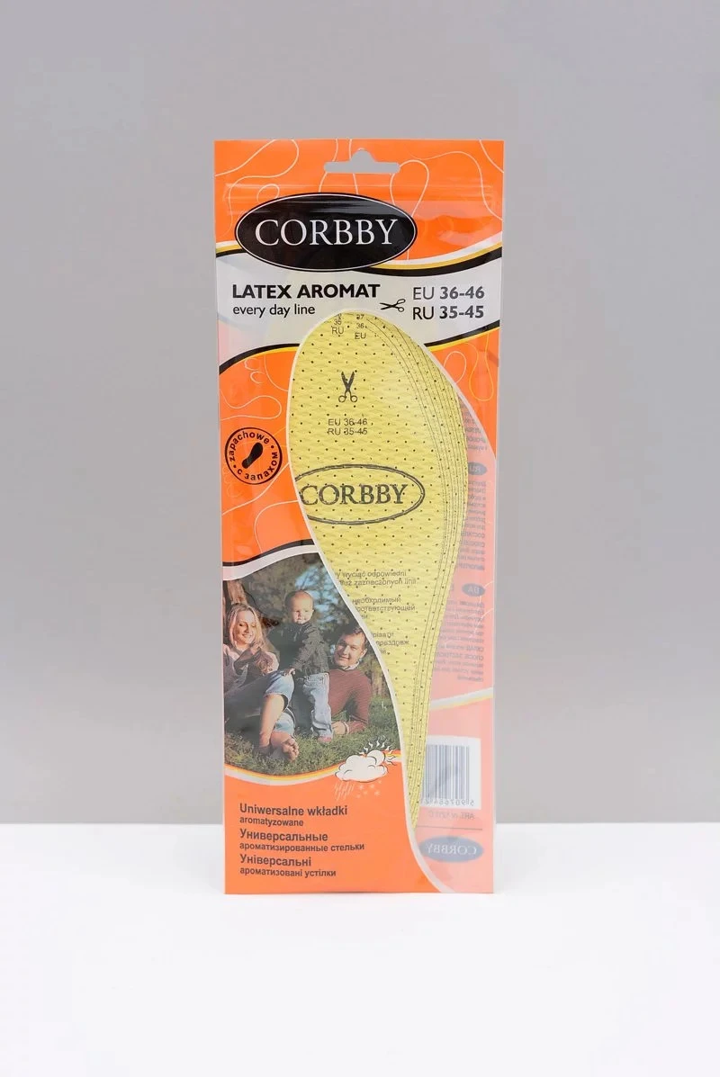 Dwuwarstwowe wkładki wykonane z miękkiej pianki lateksowej pokrytej warstwą bawełnianej tkaniny. Elastyczny i miękki lateks działa amortyzująco, zapobiega mikrowstrząsom gwarantując Twoim stopom komfort i wygodę. Aby zapewnić świeżość i przyjemny zapach użytkowanego obuwia nasączono go dodatkowo cytrynowym aromatem, który długotrwale niweluje wszelkie nieprzyjemne zapachy. Zalecamy je głównie przy znacznym obciążeniu stóp (np. przy nadwadze, pracy stojącej, chodzeniu po wyjątkowo twardych podłożach czy też do butów z bardzo cienką podeszwą). Ten rodzaj wkładek nadaje się do każdego typu obuwia.