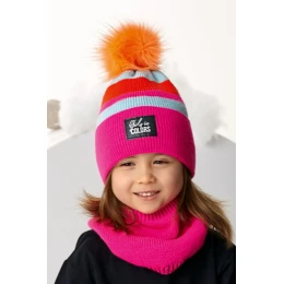 Dívčí čepice s bambulí, podšitá bavlnou. Comp. sur. 90% akryl, 10% vlna, podšívka: 95% bavlna, 5% elastan