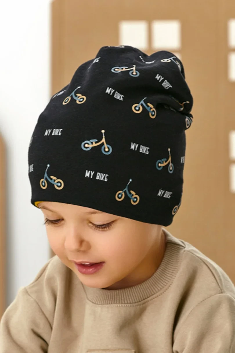 Chlapecká čepice z dvojité bavlny, oboustranný jemný potisk.Složení: 95% bavlna, 5% elastan