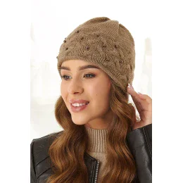 Dámská čepice z hřejivé vlny příjemné na dotek, zdobená vzorovaným prošíváním a korálky.