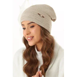 Dámská čepice z podkladu z hřejivého, na dotek příjemného fleecu, zdobená jemným vzorovaným stehem a drobnou, lesklou ozdobou se zirkony. Model je prodloužený, zadní část je podšitá ozdobným překrytím, díky kterému čepice velmi pěkně sedí.