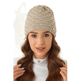 Dámská čepice z podkladu z hřejivé vlny příjemné na dotek, zdobená vzorovaným prošíváním a drobnou třpytivou zirkonovou ozdobou.