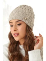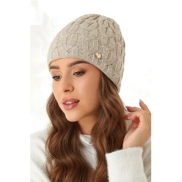 Dámská zimní čepice. Hřejivá, vyrobená ze spodní vrstvy úpletu, měkká a pružná. Volnější střih, mírně zvýšený okraj, módní zimní vzor po celé ploše. Zdobená malou plaketou s logem společnosti
