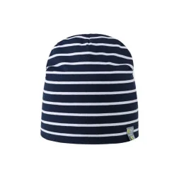 Chlapecký klobouk z podkladové jemné bavlny, pruhovaný, s malou nášivkou.