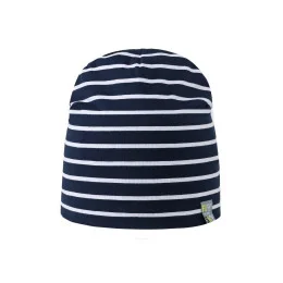 Chlapecký klobouk z podkladové jemné bavlny, pruhovaný, s malou nášivkou.