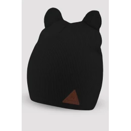 Chlapecká čepice z podkasané žebrované bavlny s ušima a malou nášivkou. Složení: 95% bavlna, 5% elastan