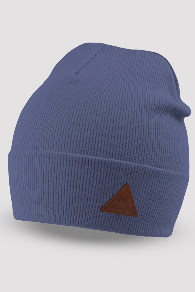 Chlapecká čepice s malou nášivkou z podóy žebrované bavlny. Složení: 95% bavlna, 5% elastan