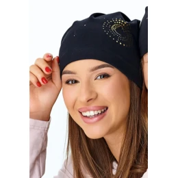 Dámská tenká čepice z jednoduché bavlny se zlatou aplikací. Složení: 95% bavlna, 5% elastan