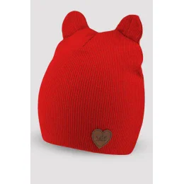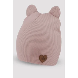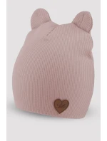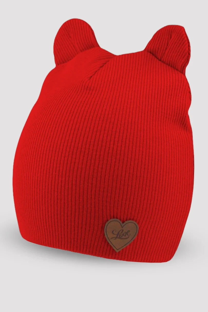 Dívčí čepice z podkasané žebrované bavlny s ušima a malou nášivkou. Složení: 95% bavlna, 5% elastan