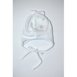Dívčí klobouk s ozdobnou mašlí a výšivkou.