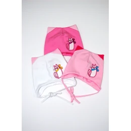 Dívčí klobouk s malými oušky a barevnou aplikací.