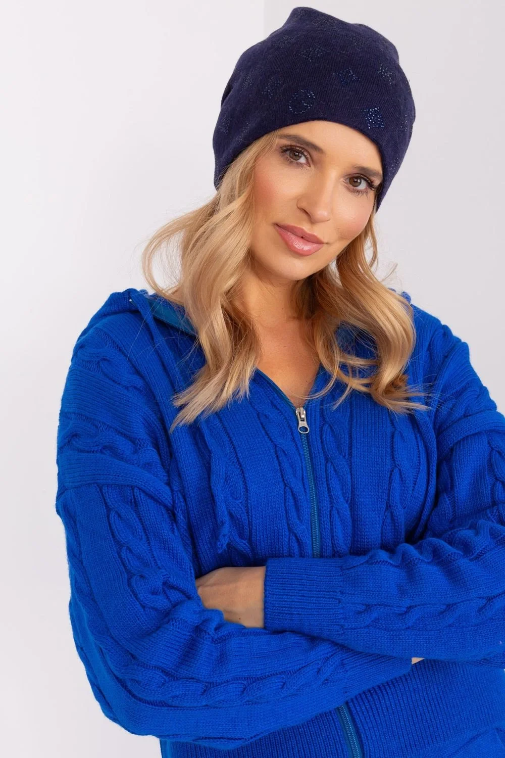 Hřejivá dámská zimní čepice z kašmíru s ozdobnou kamínkovou aplikací.
