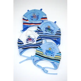 Chlapecká čepice na zavazování s aplikací malého auta.