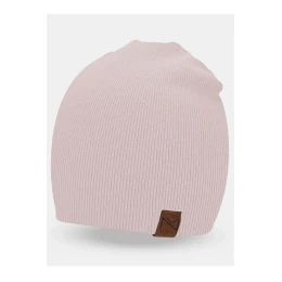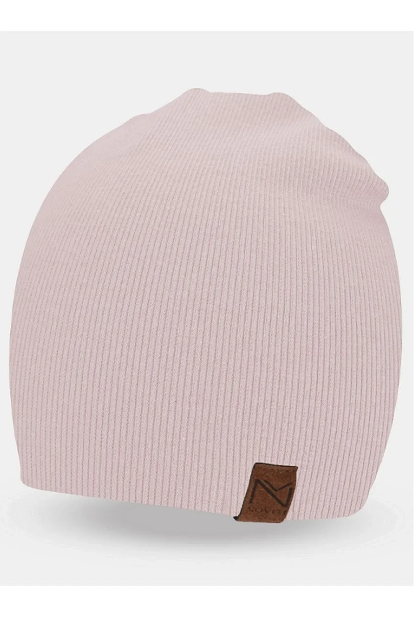 Dívčí čepice z jednovrstvé žebrované bavlny, zdobená nášivkou.