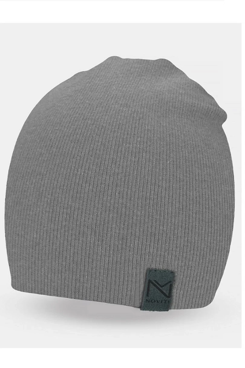 Chlapecká čepice z jednovrstvé žebrované bavlny, zdobená nášivkou.