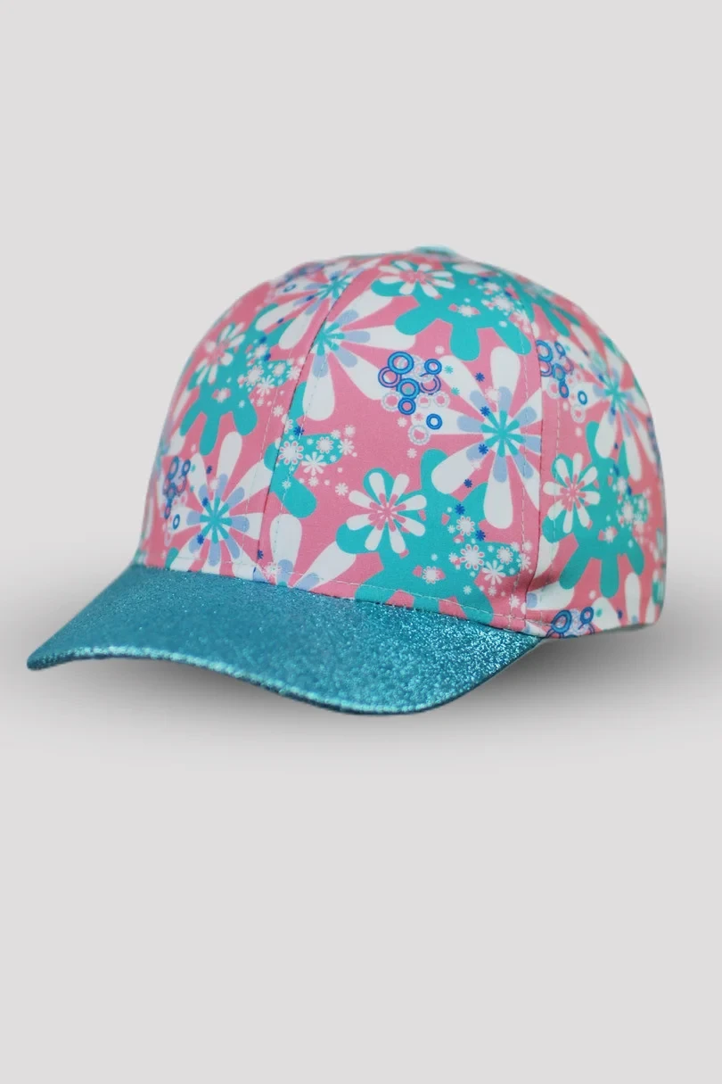 Dívčí čepice s potiskem květin a třpytivým kšiltem.Složení: 100% bavlna