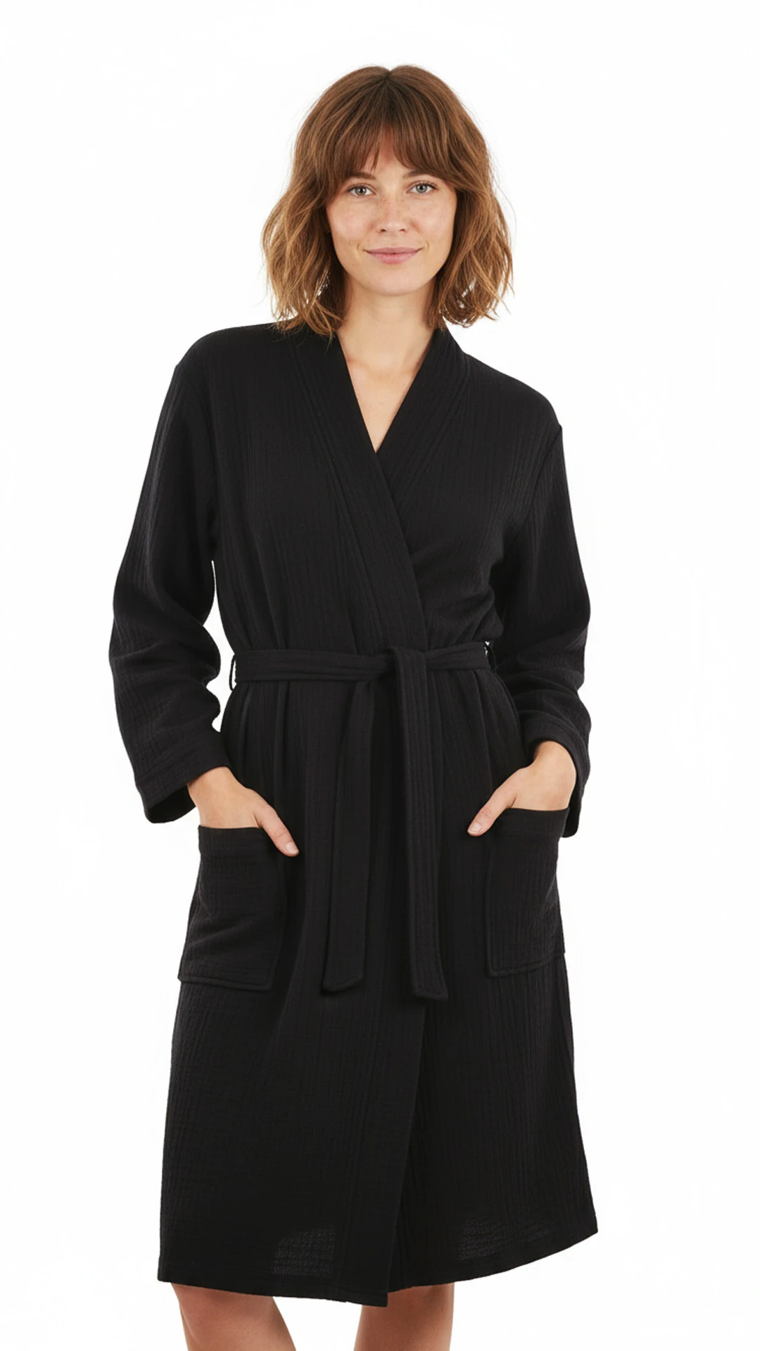 - pohodlný unisex kimono střih v praktické délce 110cm je zároveň elegantní a praktický. Léga dostatečně uzavírá výstřih, dvě prostorné kapsy využijete nejen pro uložení klíčů při návštěvě sauny nebo wellness.